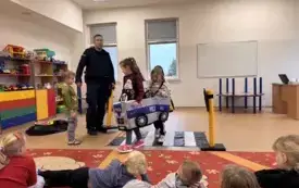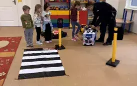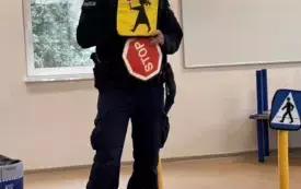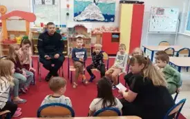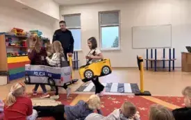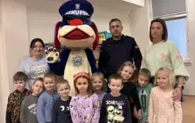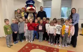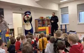 W ramach realizacji projektu ,,Mały przedszkolak – Wielki człowiek” dnia 14 marca 2025r. odbyło się spotkanie naszych przedszkolaków z panem policjantem - Dzielnicowym z Posterunku Policji w Wodzisławiu Śląskim. Spotkanie miało przybliżyć nam zawód policjanta, czynności przez niego wykonywane, a także poznać wyposażenie oraz charakterystyczny ubiór. Rozmawialiśmy również na temat konieczności przestrzegania przepisów ruchu drogowego, zasad bezpiecznego przechodzenia przez drogę, utrwaliliśmy znajomość niektórych znaków drogowych. Dzieci zobaczyły prawdziwe policyjne kajdanki i pałkę. Główną atrakcją spotkania była maskotka śląskiej policji – pies Sznupek, która wywołała uśmiech na twarzach przedszkolaków. Było to bardzo udane spotkanie. Na zakończenie wszyscy uczestnicy spotkania wykonali z policjantem i ogromnym pluszakiem pamiątkowe zdjęcie.